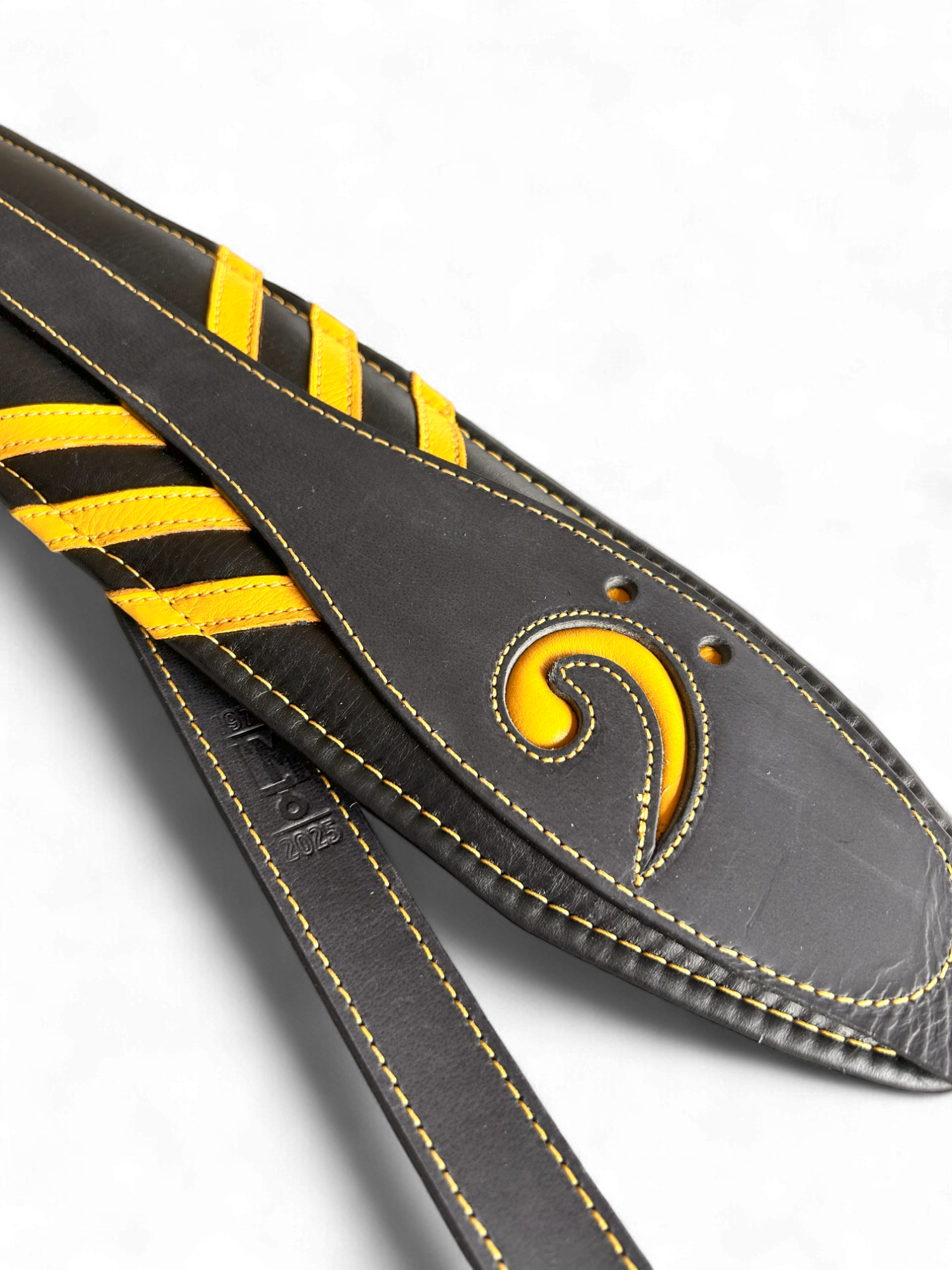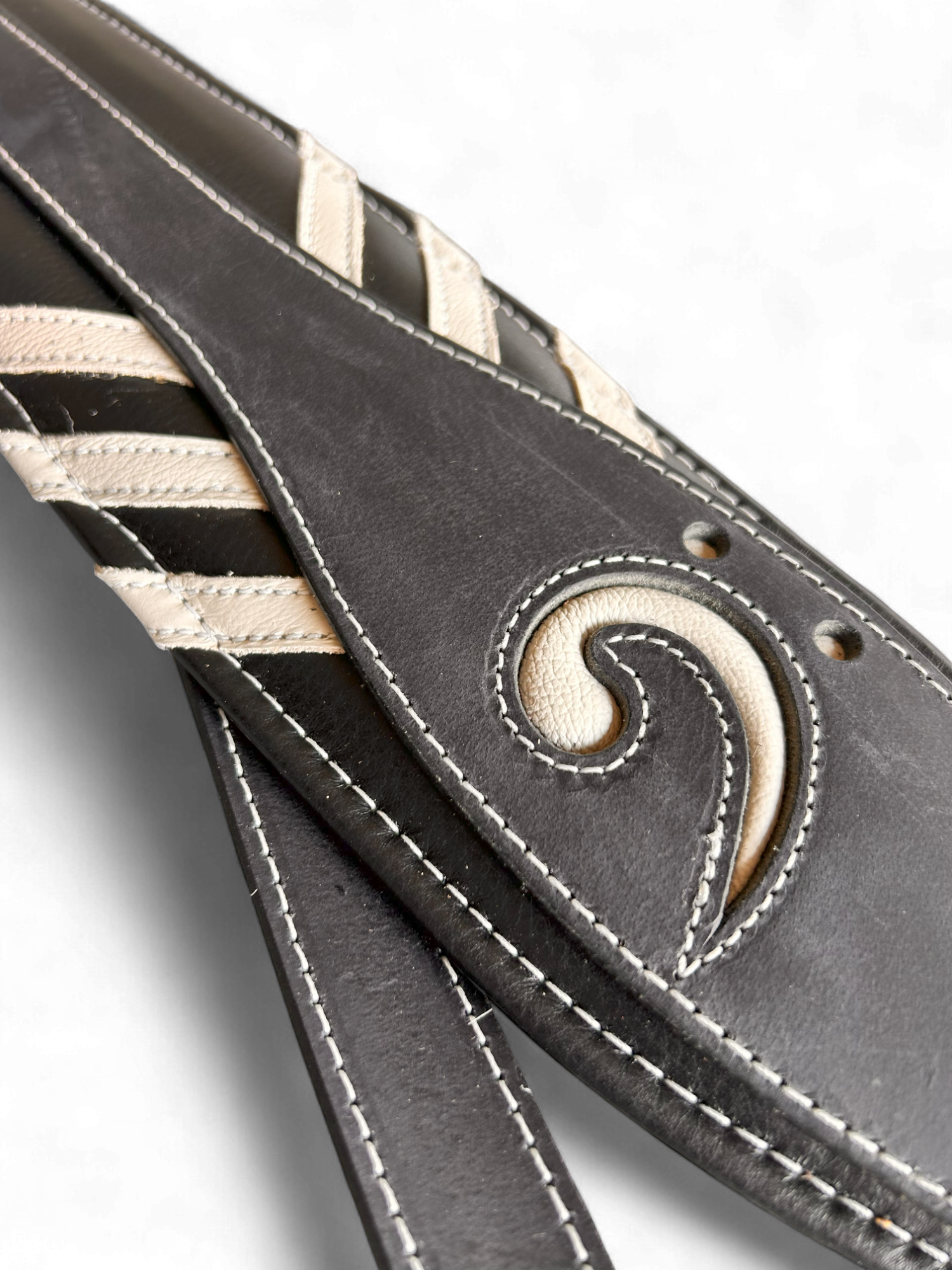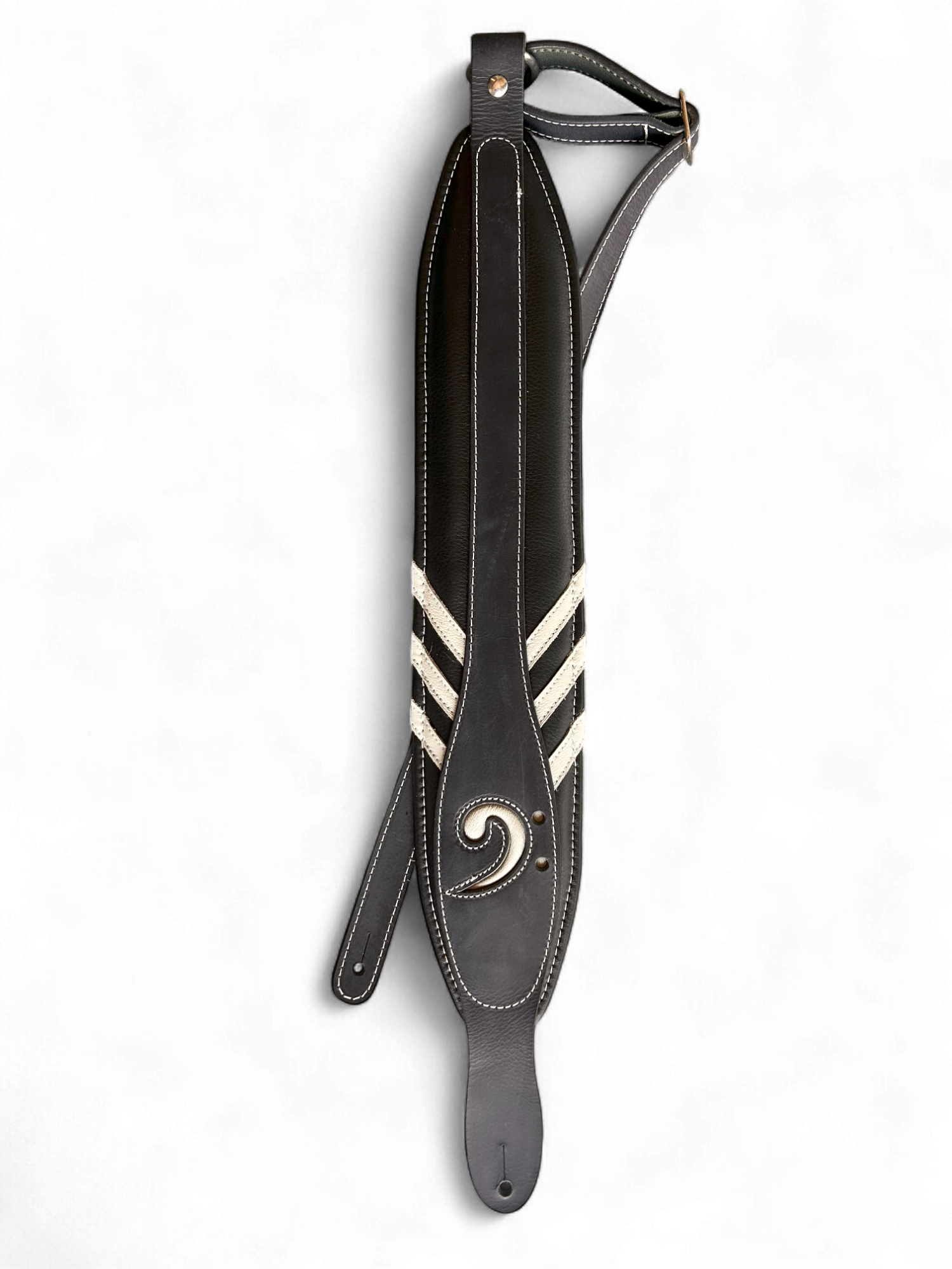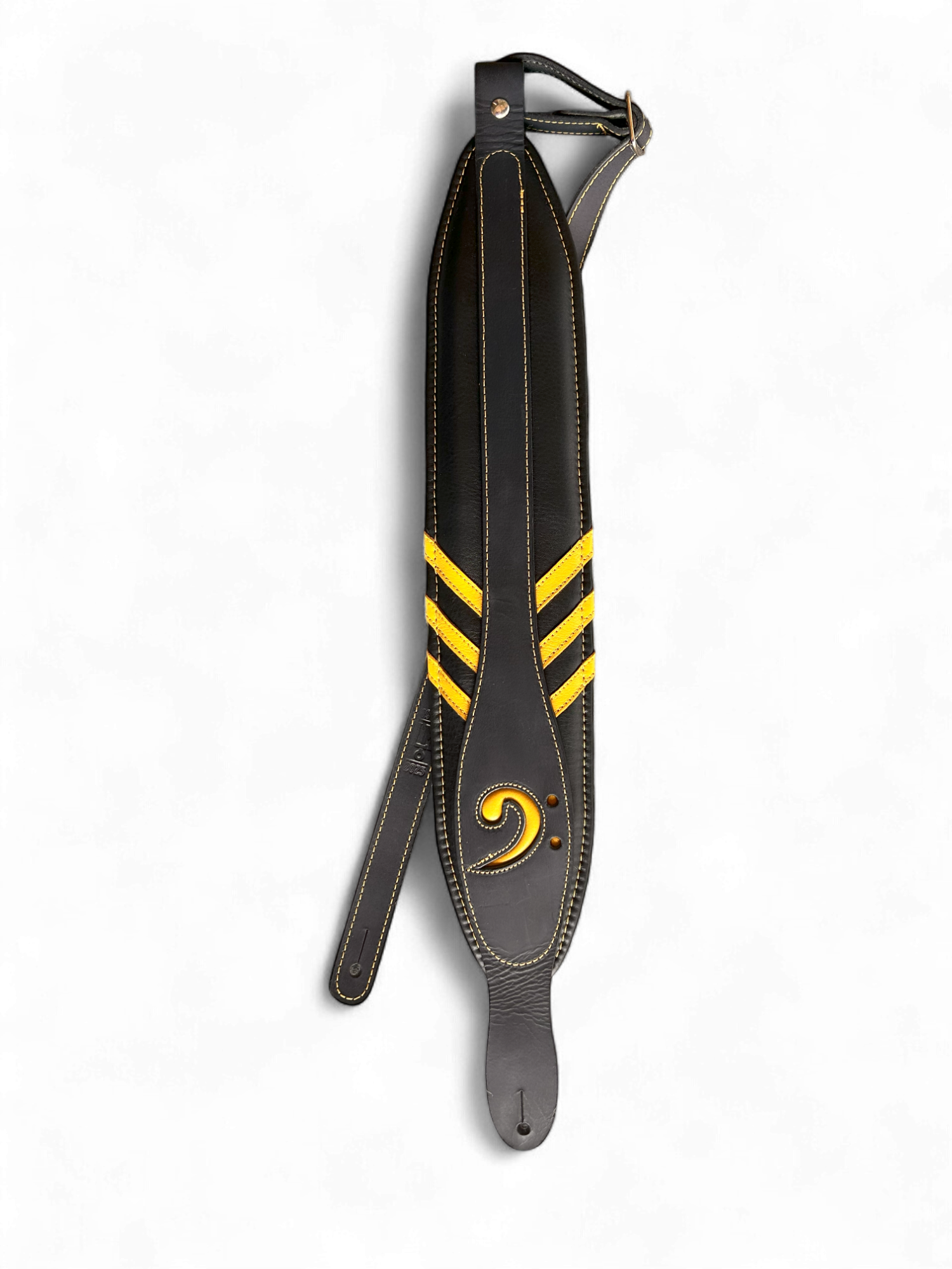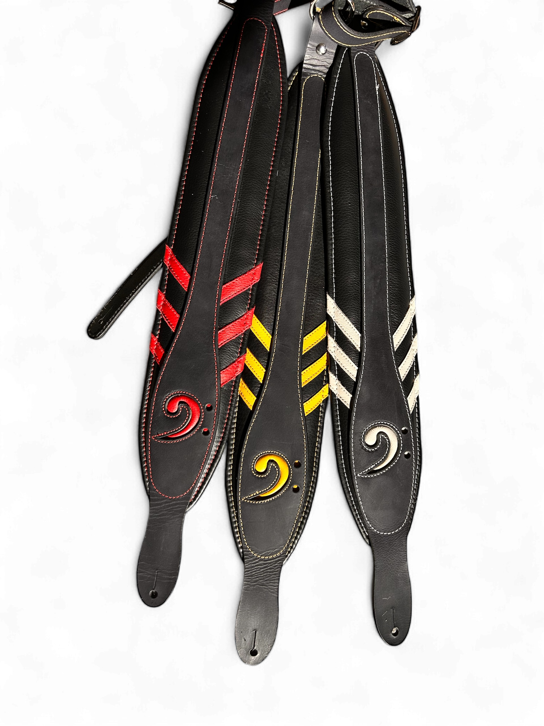 - Premium Leather Bass Guitar Strap with "Racer" Stripe detail stitching